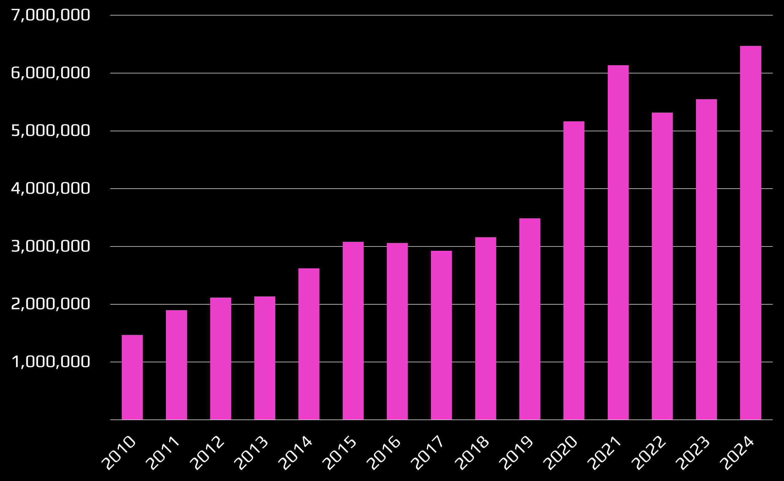 Take a look at this chart—a clean trend showing remarkable increases in reports of fraud and identity theft. In 2024, that’s one report for every 39 adults in the U.S. (2) You might already be a statistic. (3)